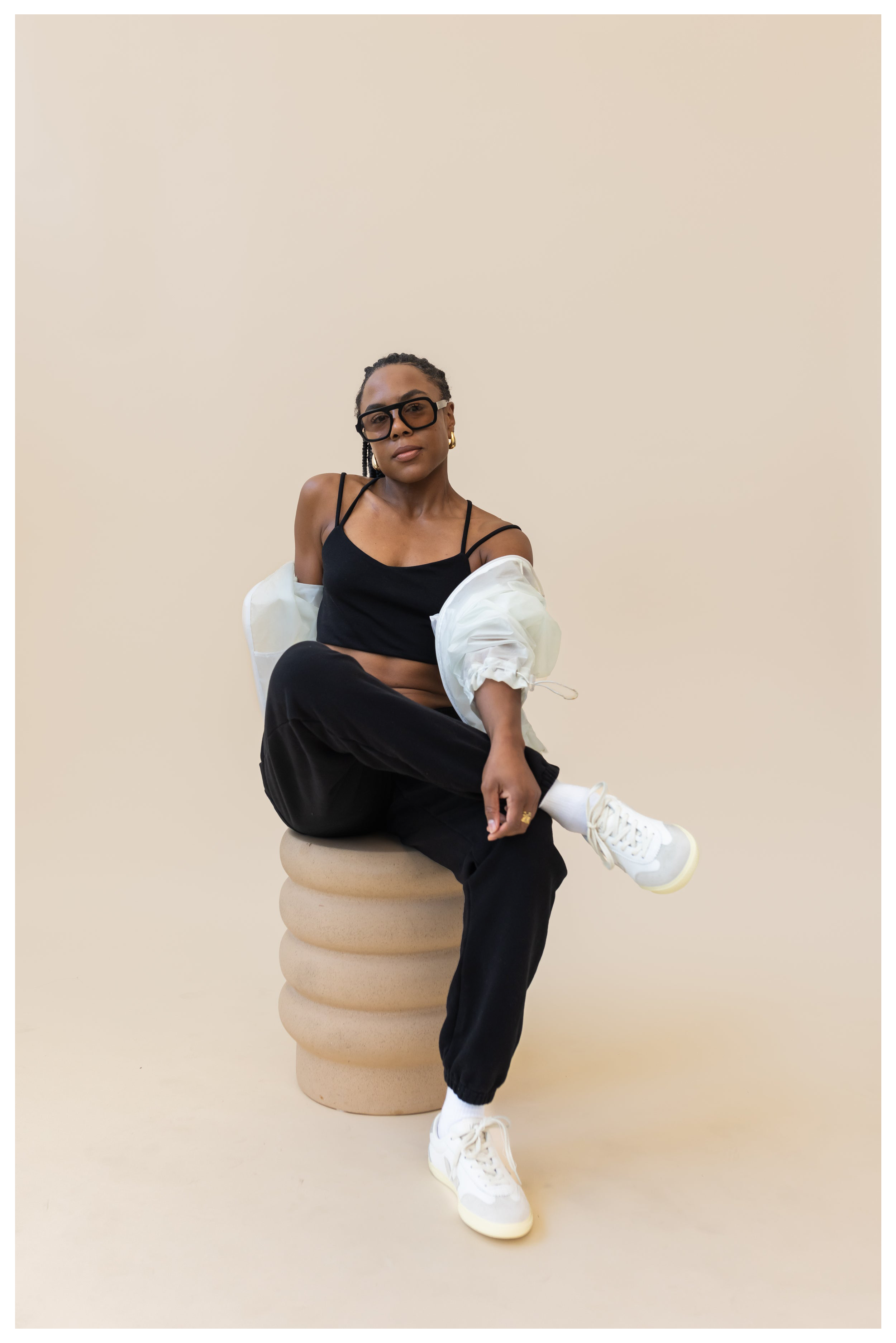 Reprise zeroed in on Tencel, a tree-based fiber, to create her activewear. It’s a mix of beechwood, pine trees, and eucalyptus.