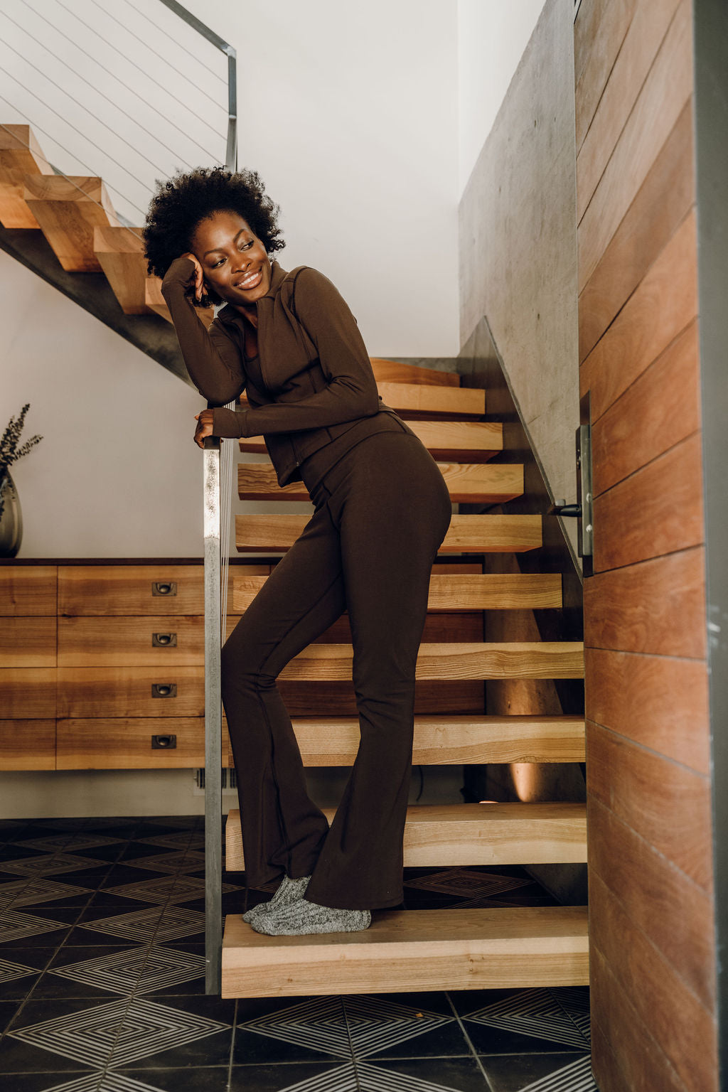 Reprise zeroed in on Tencel, a tree-based fiber, to create her activewear. It’s a mix of beechwood, pine trees, and eucalyptus.